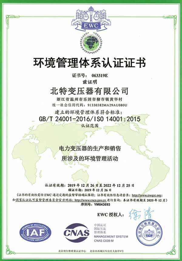 环境管理体系认证证书-英